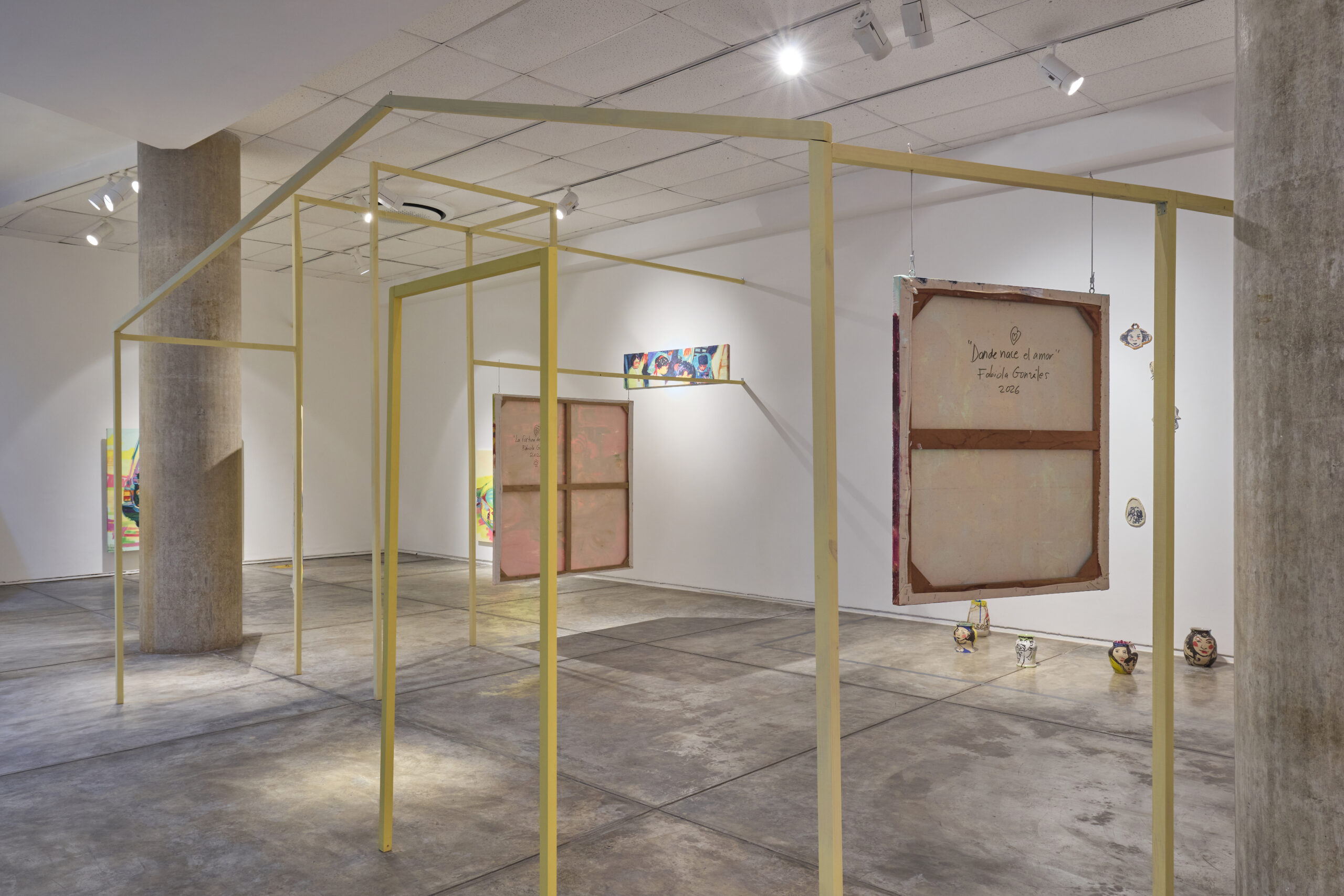 Esta atención sobre la experiencia vivida hace que la casa sea un elemento central para Fabiola. Materializada como una estructura arquitectónica, esta casa nos convoca como audiencia al demandarnos interactuar con ella para ver los cuadros. Pero esta instalación alude, por extensión, a la estructura emocional que organiza nuestras maneras de relacionarnos con el mundo.