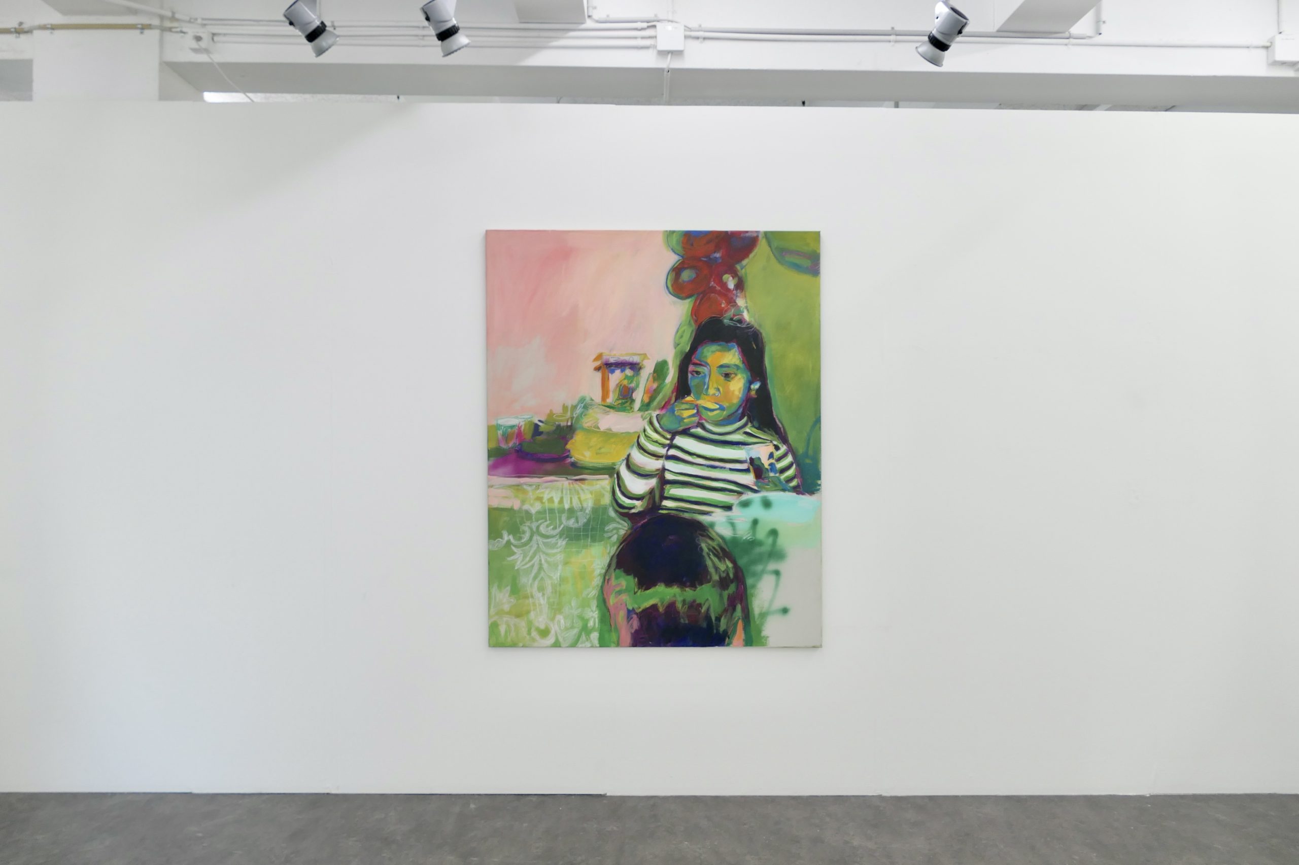 I capture the familiar rites of passage, because they are experiences that we have all been through and are still part of, with old or new ornaments. For me it is important to represent a new version of longing, to want to teleport us to our birthday parties or canonical events and give it an autonomous and free protagonism. This selection of five paintings is a balance between silence and theatricality.