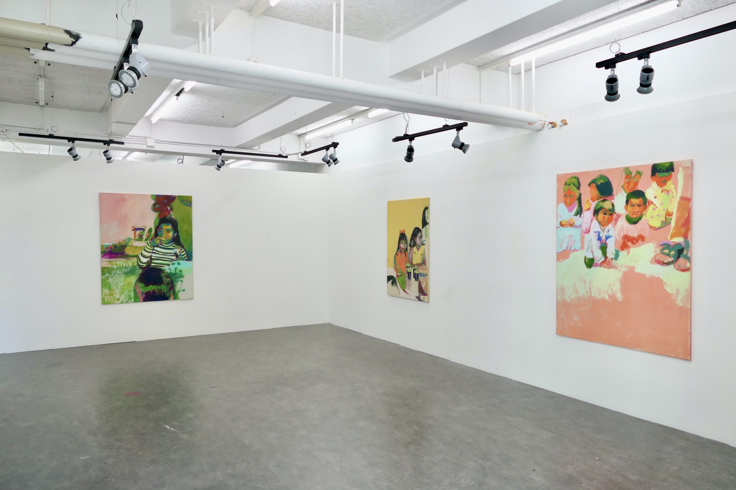 These 05 paintings participate in different moments of children’s celebrations. Super Senpai in the speed before destroying a piñata, Good friendships the silence and confidence of the female bodies that are formed in the circle of women, Pijama Party, the meeting and silence of waiting to go to the decontrol of a pajama party, All star meeting is maximum overflow of the dance, and finally A not so sweet taste is a totally acid scenario of greens.