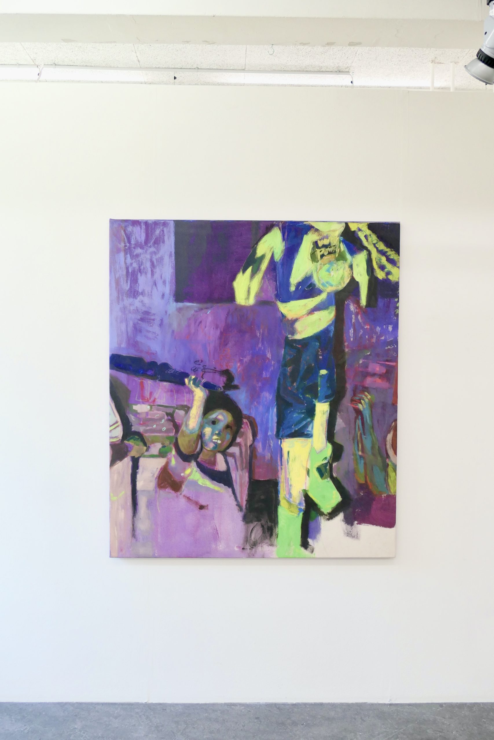 This series of paintings were made in the last 3 years (2020-2022), during this stage I was conducting research on the festive rites, I started analyzing the photographic archives of my own family albums and then that of my closer circle. With this project I begin to diagnose that the states of celebration is a fiction that hides family secrets, fetishisms, stories and passive-aggressive control.
