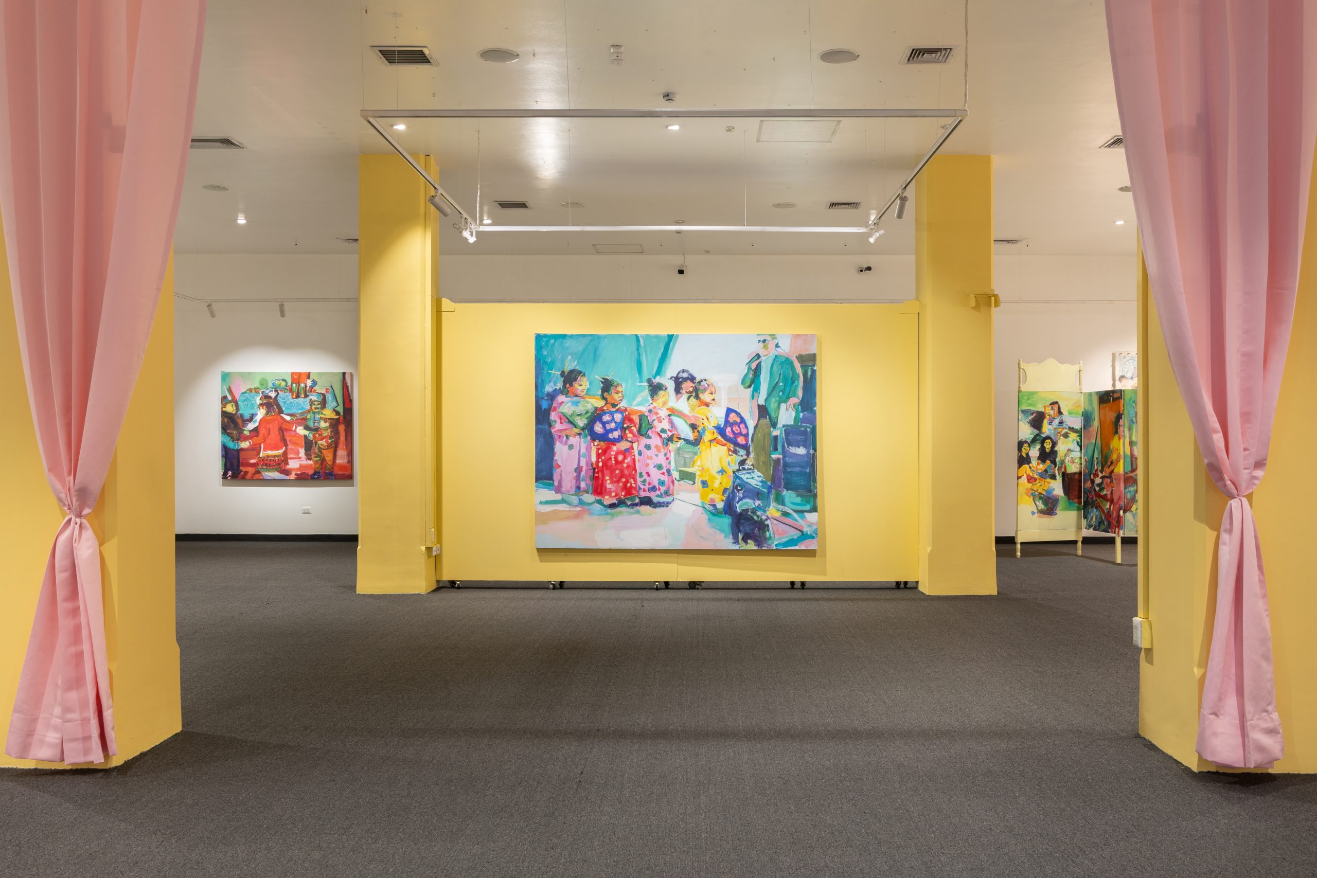 Esta buscada imprecisión en las relaciones fondo y figura permite que las obras puedan entenderse, simultáneamente, como una referencia al pasado (recreado en la remembranza) o como una alusión al futuro (fantaseado en la expectativa). Asimismo, la paleta de la artista, caracterizada por sus peculiares gramas tonales verdes, turquesas, ocres, naranjas, y violetas, le imprime un carácter irreal a las piezas, tornándolas en escenas de guiño onírico, en ensoñaciones diurnas, o en visiones casi místicas, incluso. A ese respecto considérese la referencia al cine y al teatro que se hace vía la inclusión de las cortinas, como una alusión a los mundos de ficción en las que dichas artes nos sumergen.