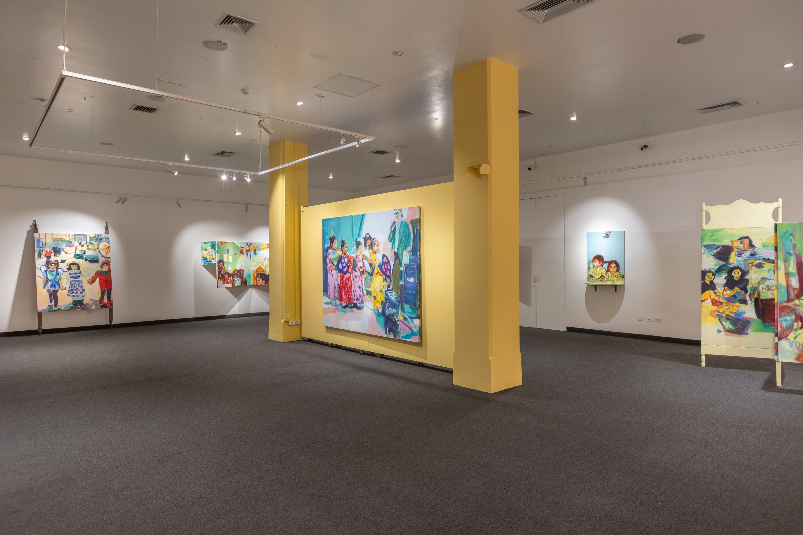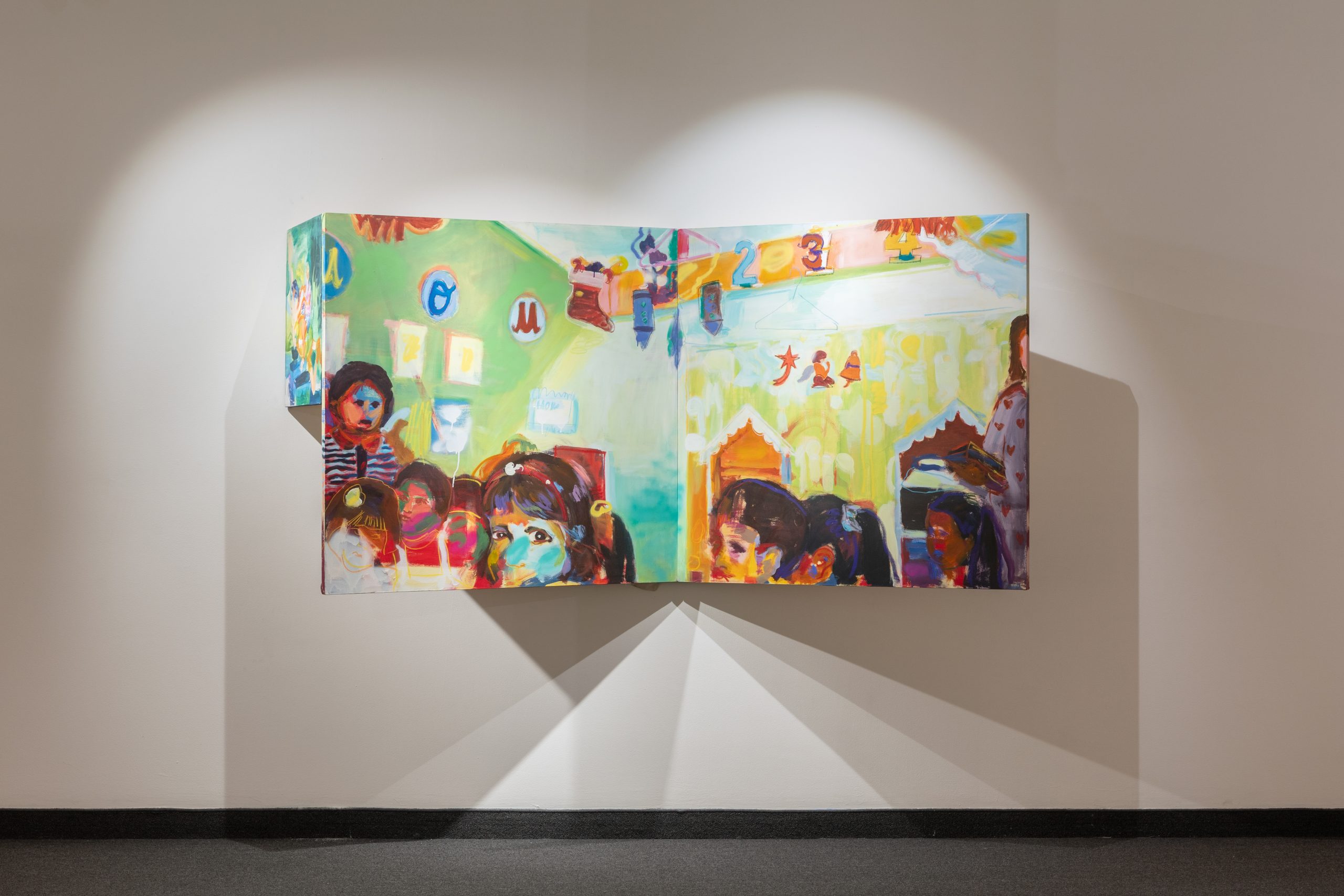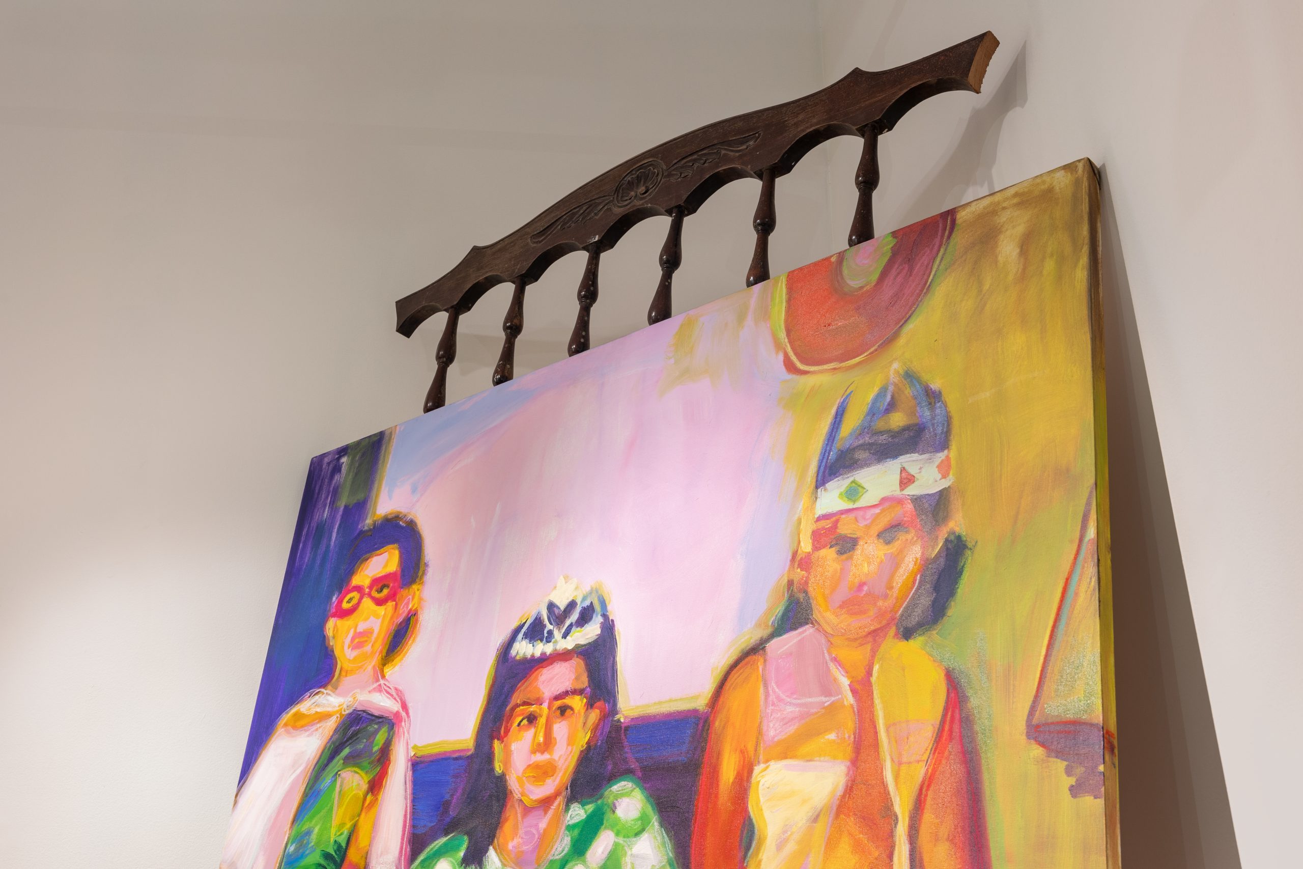 Si bien las obras de Gonzáles tienen la extrañeza de lo fantástico, igualmente tienen una calidez que es propia de lo familiar y lo hogareño. La carga afectiva que impregna estas imágenes se hace patente no solo en las armonías cromáticas que emplea la artista, sino también en su exploración de materiales y texturas blandas (como felpas y otros textiles). El recurso a dicha suavidad—visual y táctil—es clave porque las promesas que están aquí en juego están predicadas sobre una serie de condiciones tácitas que las hacen posibles: el cuidado, la seguridad, y el afecto son los garantes de cualquier fiesta que valga la pena y son las premisas que habilitan toda promesa de diversión.